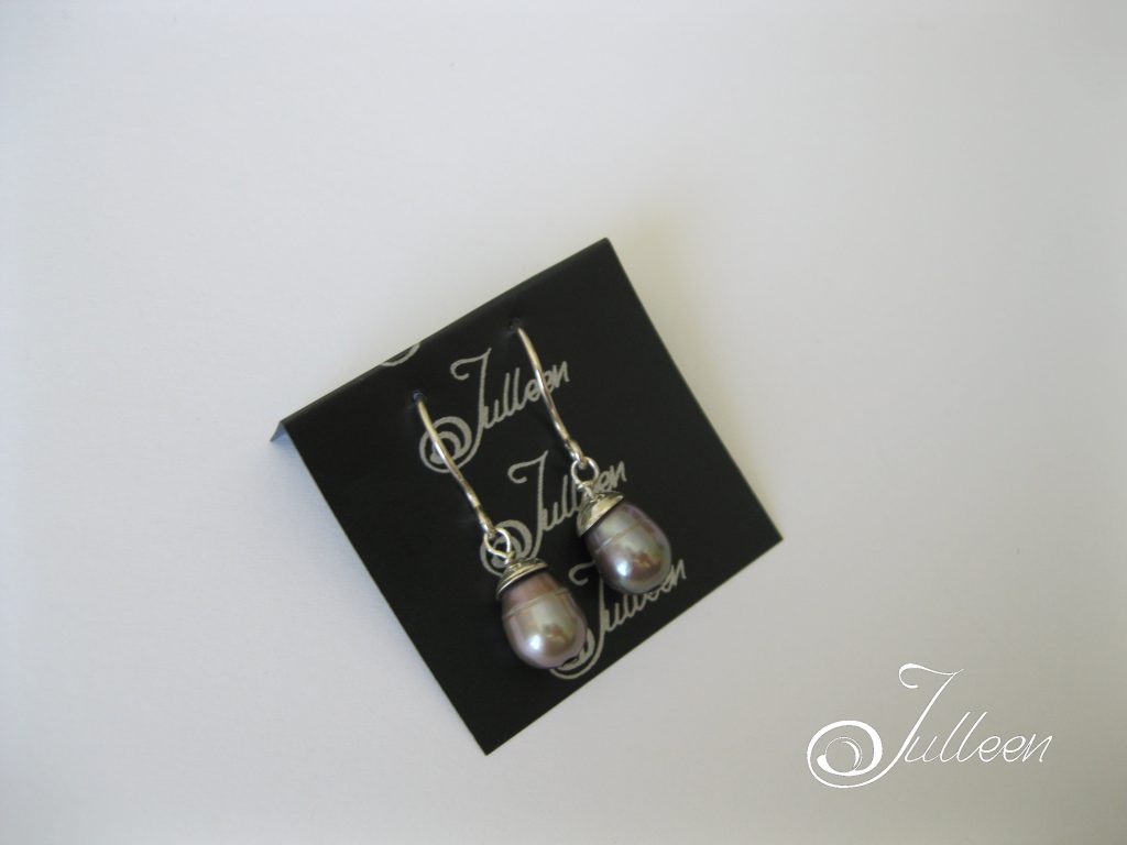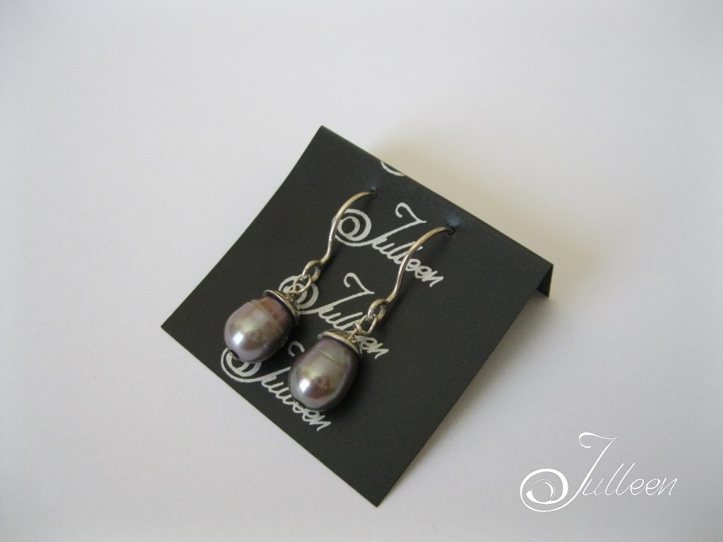 Dove Grey Oval Pearl Earring 925. 10 x 7 mm Oval with 925 Caps and Hook.