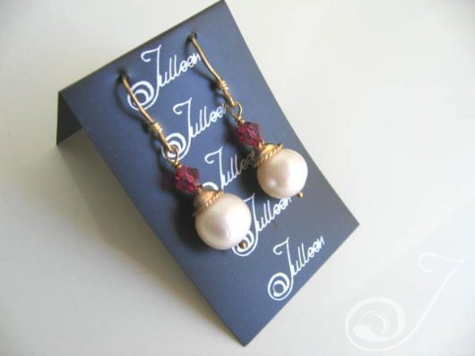 Deidre Pink Pearl Ruby and Crystal Sterling Silver Drop Earrings